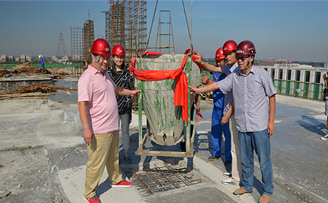 2016年9月8日,万里晴空,一片湛蓝。由公司领导张年红总经理的带领下,项目经理和部分员工整齐的来到办公楼前,工作人员把准备好的鞭炮和烟花井井有条地摆放在楼前空地上,各位同事已经准备就绪,9点30分伴随着响亮的鞭炮,最后一立方米领土成功填入办公楼。